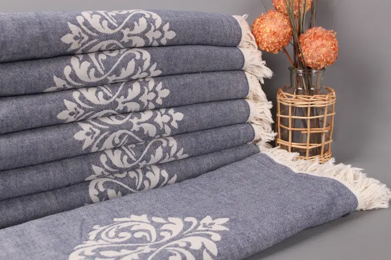 El Dokuma Lacivert Pamuk Battaniye, Barok Örtü, 60x71 İnç