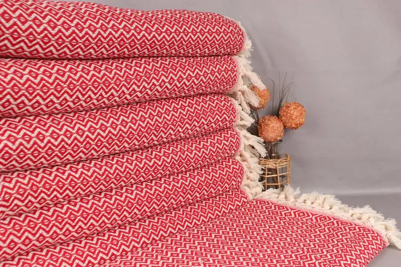 Yeni Eve Taşınma Hediyesi Kırmızı Pamuklu Battaniye, 79x95 İnç, Bej İkincil