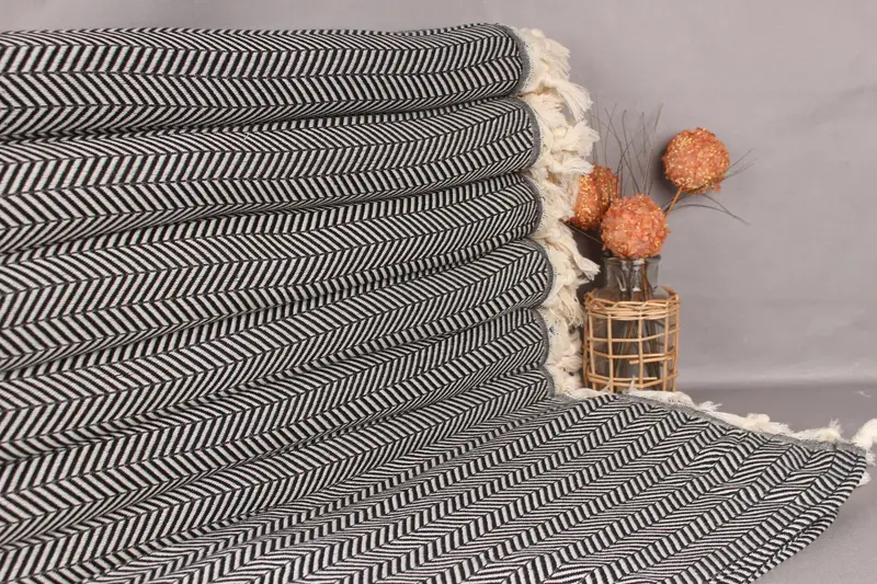Kişiye Özel Nedime Hediyesi Siyah Pamuklu Battaniye, 75x91 İnç