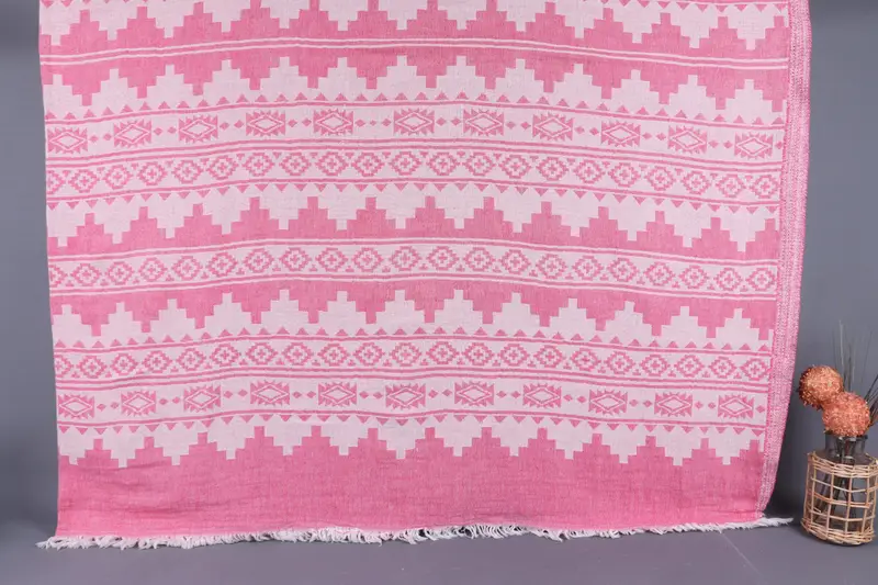 Türk Atma Battaniyesi Pembe Kilim Yatak Örtüsü, Organik Pamuk, 79x91 İnç