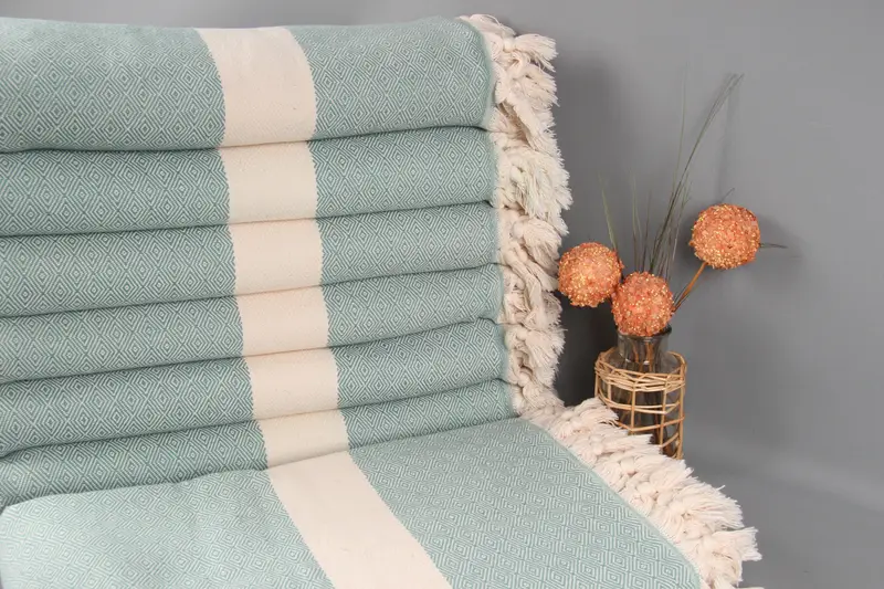 Kanepe Battaniyesi Petrol Yeşili Elmas Koltuk 79x91 İnç Organik Pamuk