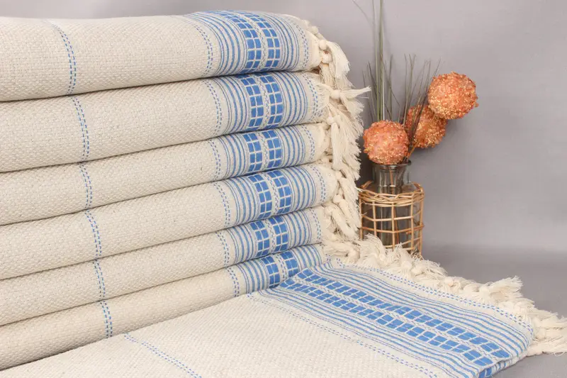 Toptan TBMM Mavi Battaniye, 93x95 İnç Keten Pamuk