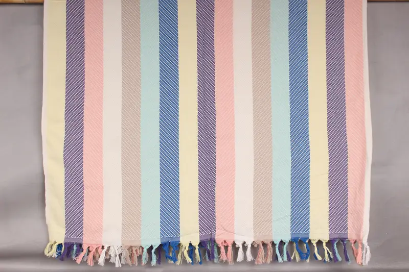 Rainbow Pamuk Battaniye Bej 75x91 İnç, Organik Pamuk