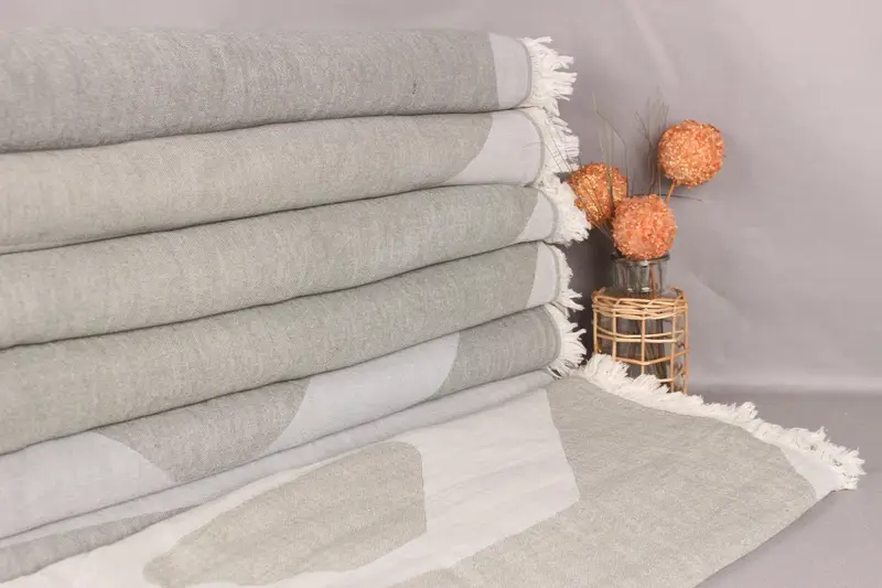 Özel Haki Yeşil-Gri Pamuklu Atkı, 83x95 İnç, Havuz Havlusu