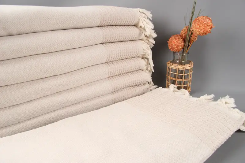 Toptan Türk Organik Pamuklu Açık Bej Çizgili Battaniye, 91x95 İnç