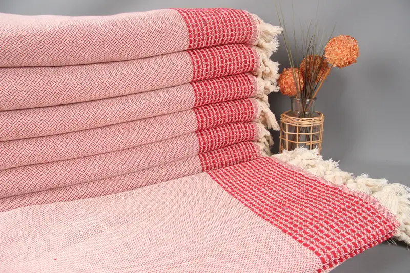 Türk Battaniyesi Kırmızı Atma Çizgili, Organik Pamuk, 91x95 İnç
