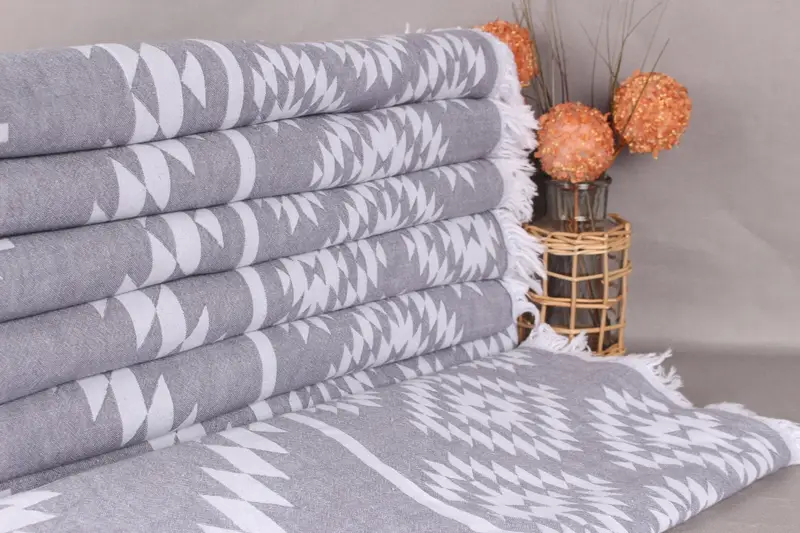 Türk Pamuklu Atkı Koyu Gri ve Bej, 56x83 İnç