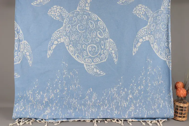 Türk Battaniyesi Organik Pamuk Petrol Mavisi Desenli, 71x93 İnç
