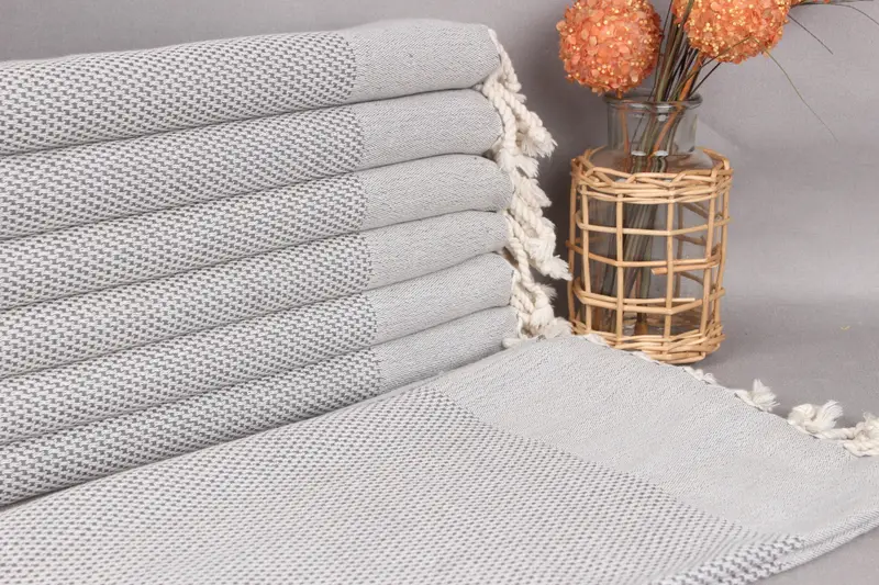 Özelleştirilmiş Koyu Gri Puantiyeli Çay Havlusu, Organik Pamuk, 24x44 İnç