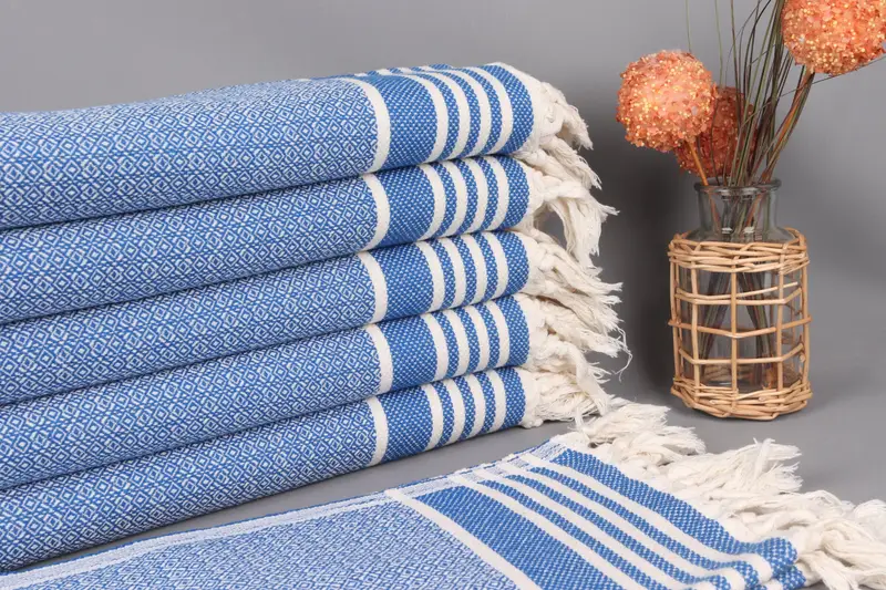 Kişiye Özel Bulaşık Havlusu Saks Mavi Bej, Organik Pamuk, 16x32 İnç