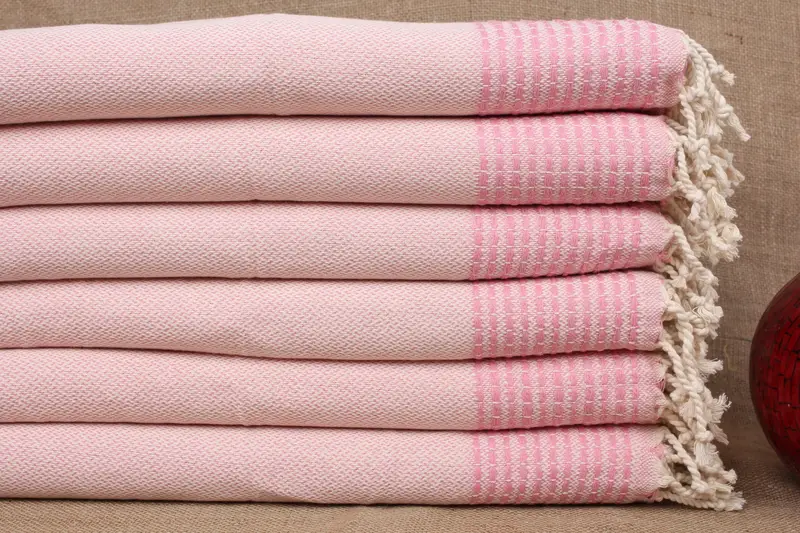 Kişiye Özel Bulaşık Havlusu Pembe Çizgili Organik Pamuk, 20x40 İnç
