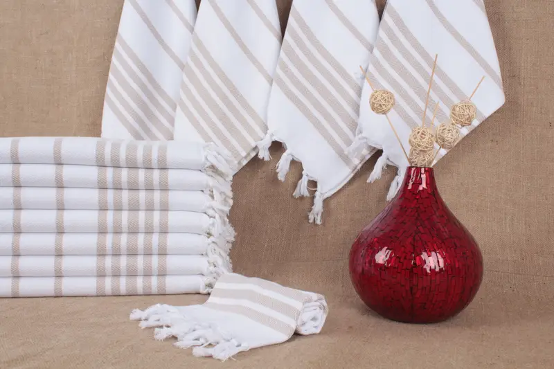 Türk El Havlusu Pamuk Bej Chevron, 24x36 İnç