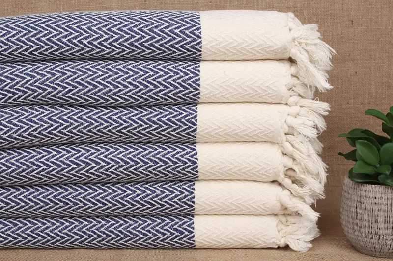 Nakışlı Lacivert Zigzag Bulaşık Havlusu, Organik Pamuk, 18x34 İnç