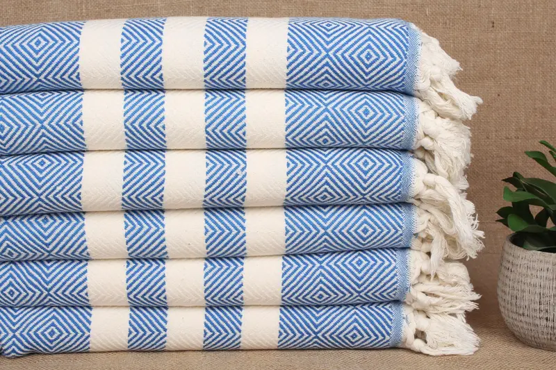 Kişiye Özel Kamp Çay Havlusu, Saks Mavisi, Elmas, 20x32 İnç