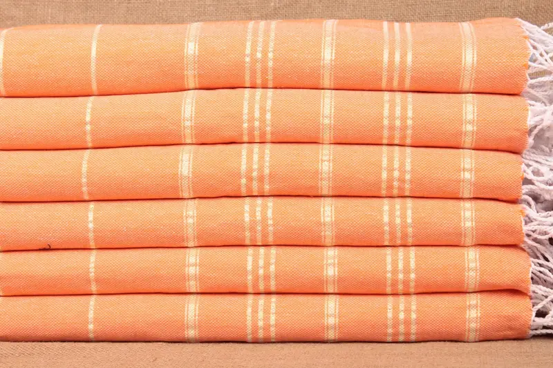 Kişiye Özel Bulaşık Havlusu Turuncu-Sarı Çizgili Bej, 24x40 İnç