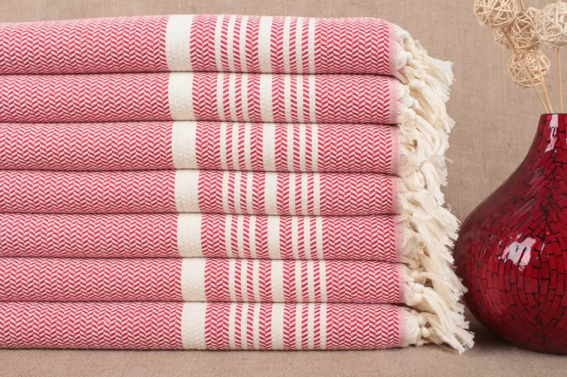 El Yapımı Türk Organik Pamuk Çizgili Peşkir, 18x40 İnç