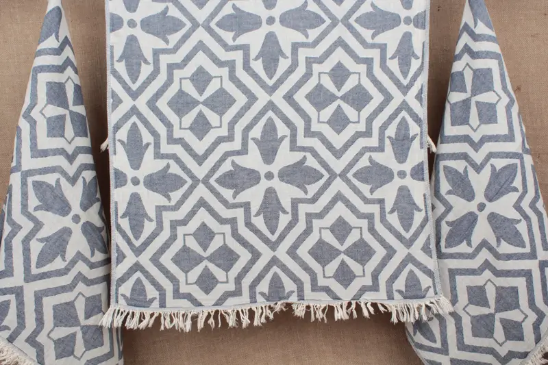 Lacivert Lale Desenli Küçük Havlu, Organik Pamuk, 24x40 İnç