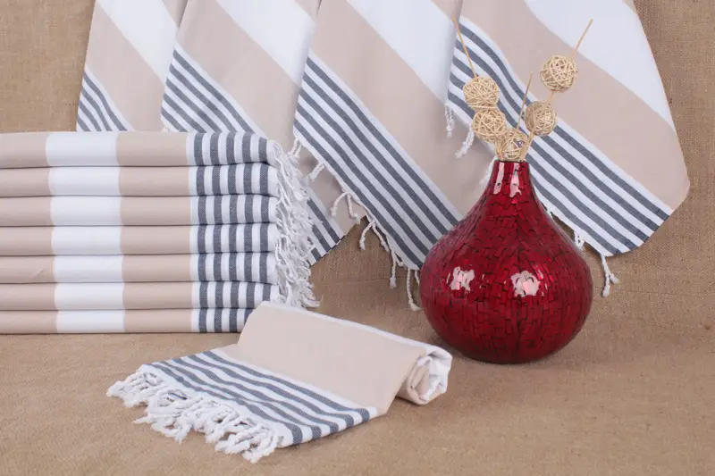 Türk Pamuk Çizgili Peşkir El Havlusu, Bej, 24x40 İnç
