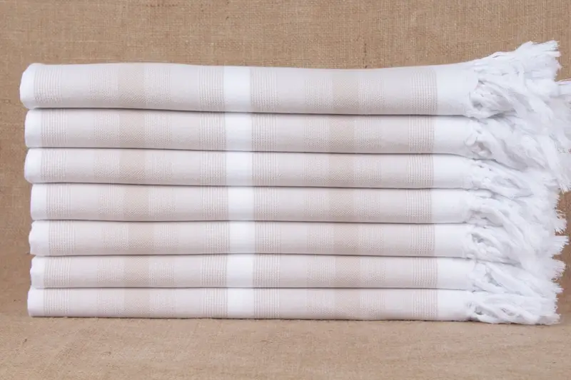 El Havlusu Türk Pamuğu, Çizgili Bej, 24x32 İnç