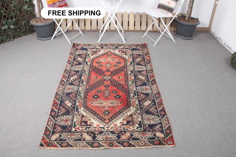 Red and Blue Abstract Rug, 3.7x6.1 ft Chic Decor