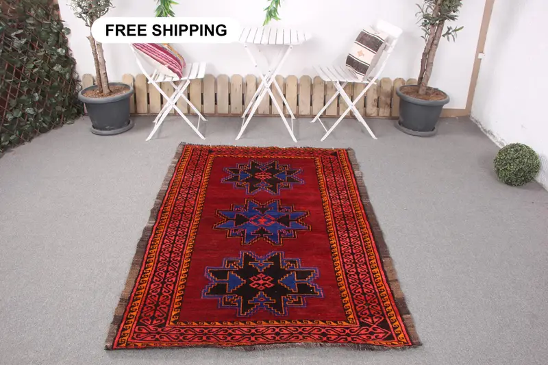 Red & Blue Check Rug, 3.9x5.8 ft Elegant Decor