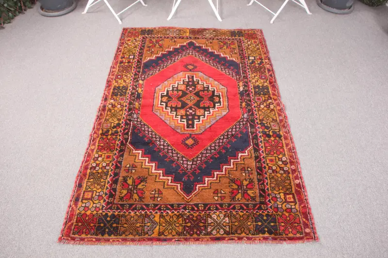 Red Rug, 3,7x5,7 ft with Orange Accents