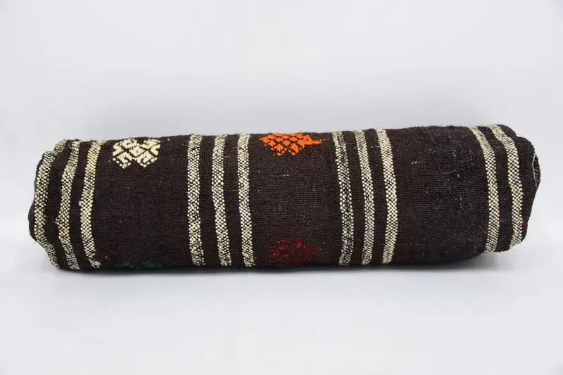 Embroidered Bohemian Pillow, 6x20 Brown & Orange Wool Throw Pillow