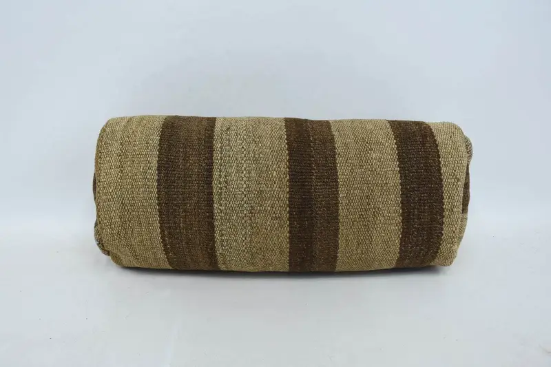 Bohemian Embroidered Pillow, Beige & Brown Wool Throw Pillow