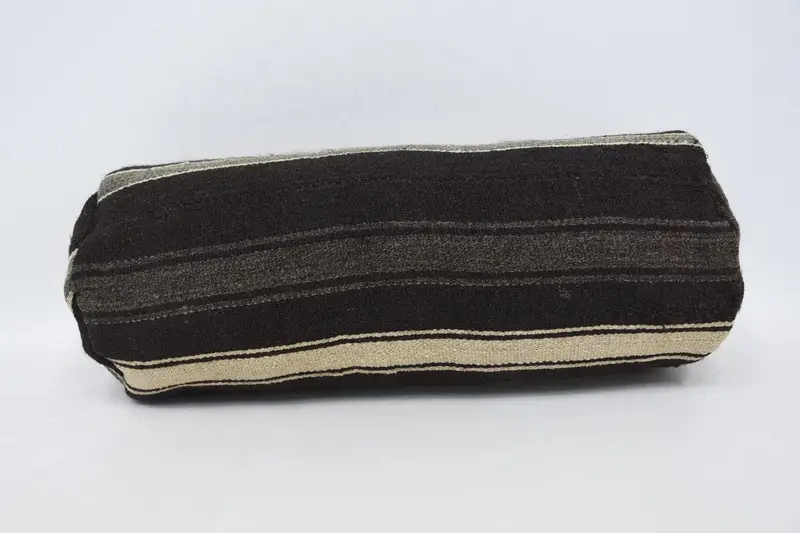 Bohemian Brown & Gray Embroidered Pillow, Handmade Wool Throw Pillow