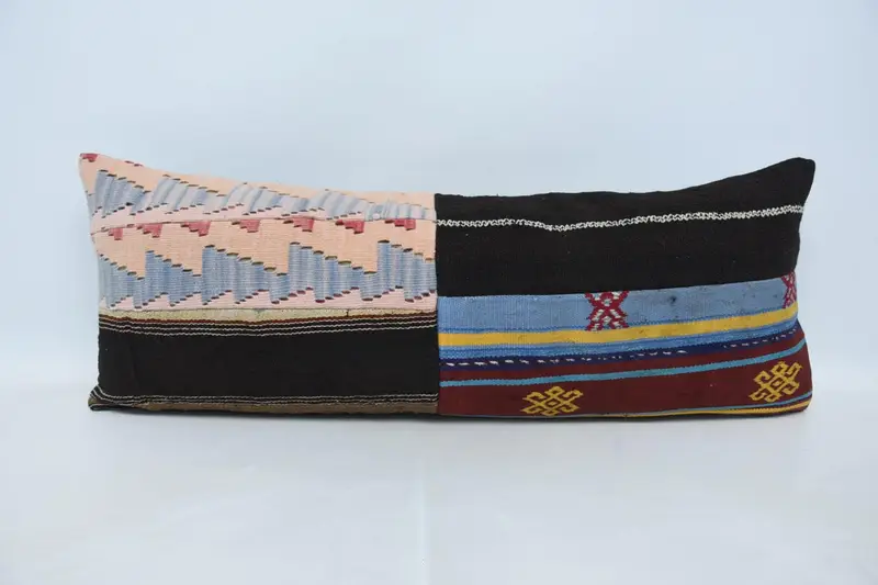 Blue & Brown Geometric Throw Pillow, Handmade Hemp & Cotton Cushion