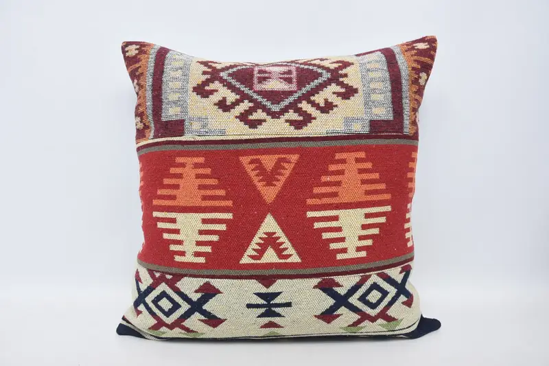 Red & Beige Embroidered Throw Pillow, 28x28 Square Pillow