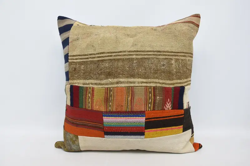 Embroidered Floral Throw Pillow, 32x32 Inch Beige & Red Pillow