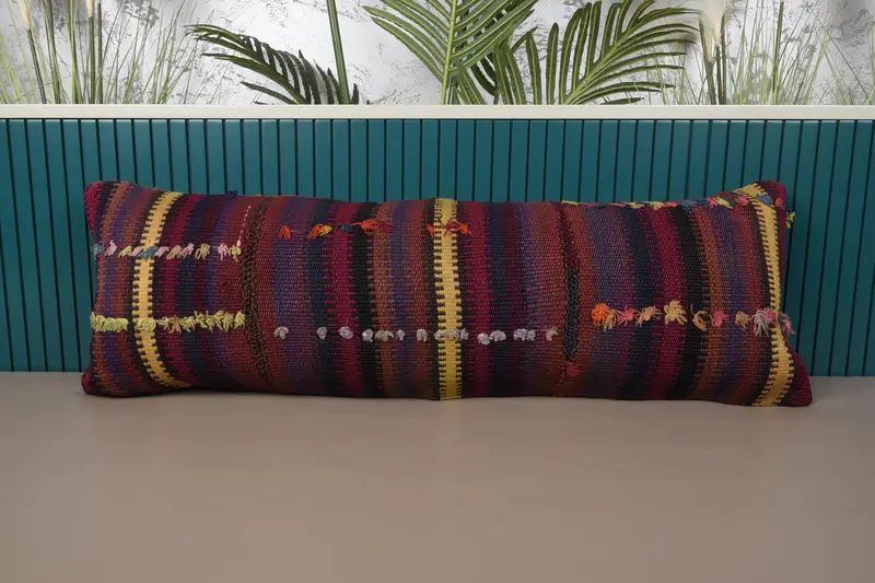 Red & Purple Patchwork Throw Pillow, 12x36 Embroidered Rectangle Pillow