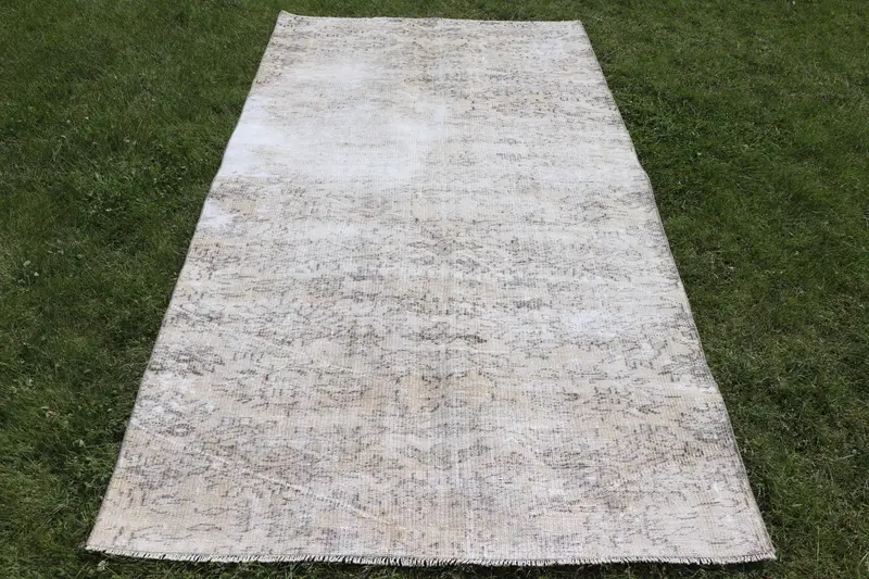 Elegant Beige & Brown Check Rug, 4.3x8 ft Chic Decor