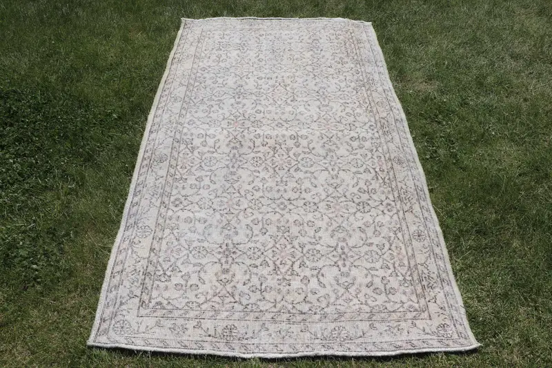 Elegant Beige Rug, 3.8x6.8 ft Floral & Geometric Design