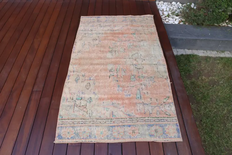 Orange & Green Ikat Rug, 3x5 ft Vibrant Decor