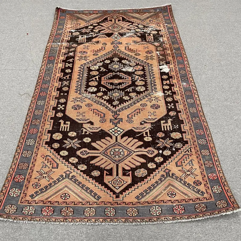 Orange & Brown Check Rug, 3.7x6.5 ft Chic Decor