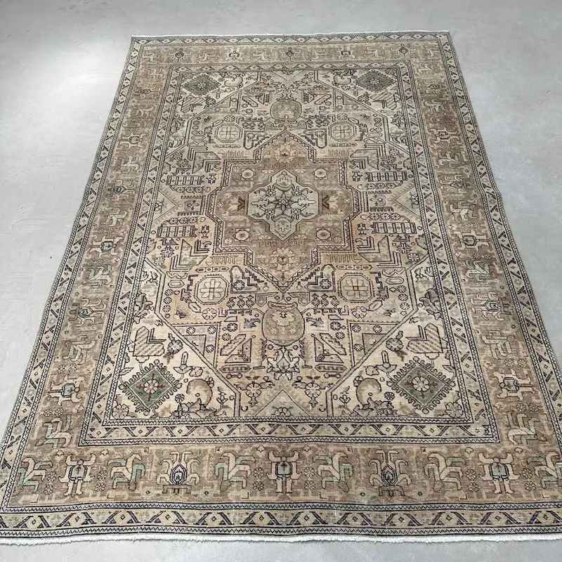 Brown, Green Rug 6,2x9,4 ft, Geometric Floral Design