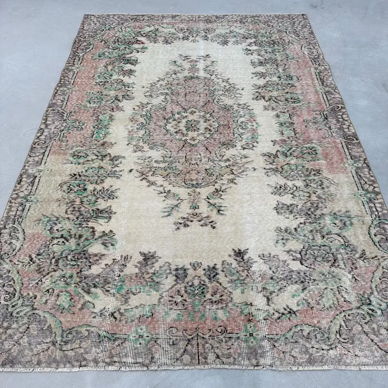 Elegant Beige & Orange Rug, 5.4x8 ft Persian Pattern