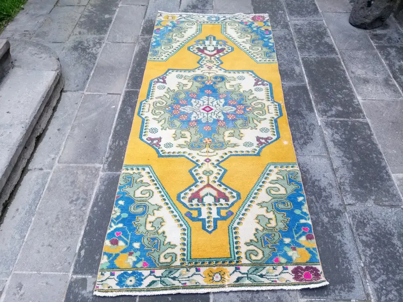 Orange & Blue Oriental Rug, 3,17x7,67 ft Elegant Decor