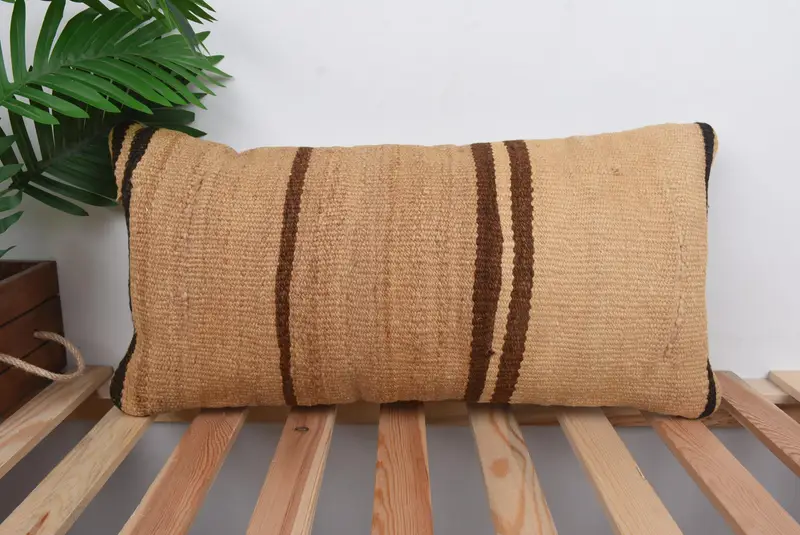 Beige & Brown Striped Pillow, 12x24 Embroidered Throw Pillow
