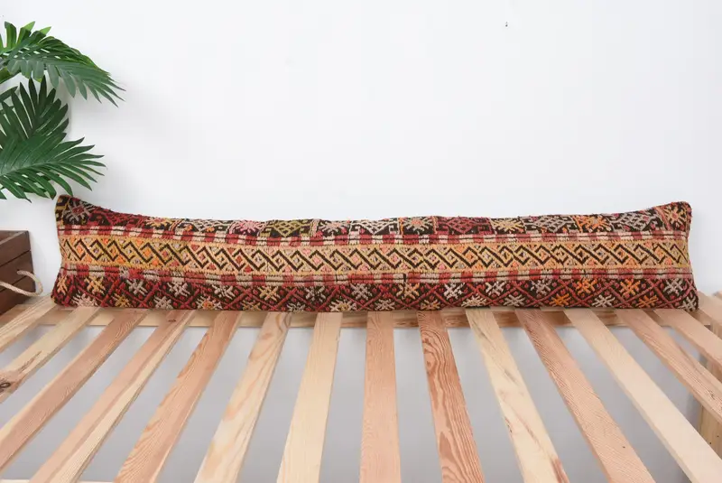 Embroidered Red & Orange Geometric Throw Pillow, Handmade Vintage Cushion