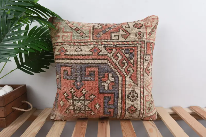 Orange & Beige Southwestern Throw Pillow, 18x18 Embroidered Cushion
