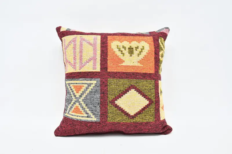 Orange Southwestern Embroidered Pillow, Vintage Throw Pillow