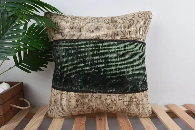 Beige & Black Patchwork Throw Pillow, Vintage Embroidered Cushion