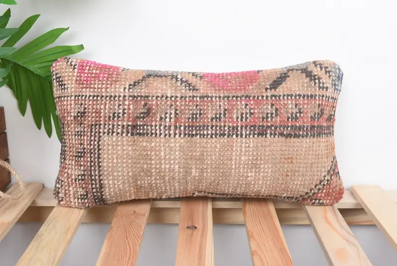 Handmade Southwestern Embroidered Pillow, Vintage Beige & Brown Throw Pillow
