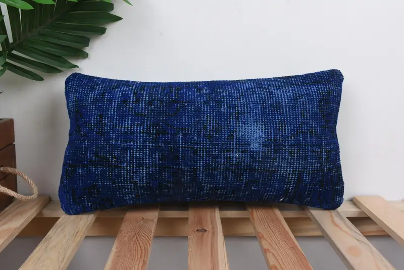 Blue Southwestern Embroidered Throw Pillow, Vintage 8x16 Pillow