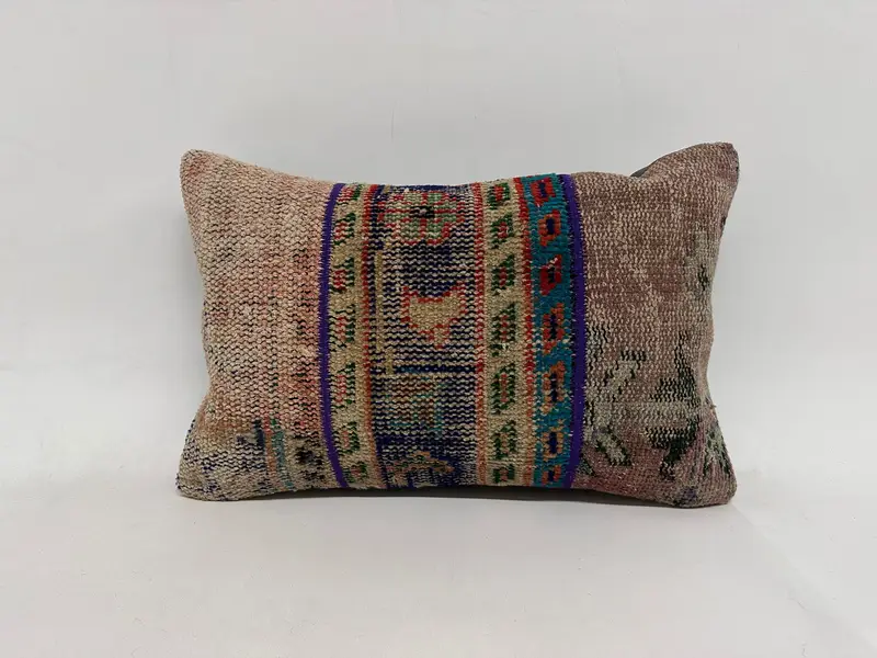 Blue & Red Patchwork Throw Pillow, 16x24 Embroidered Vintage Pillow