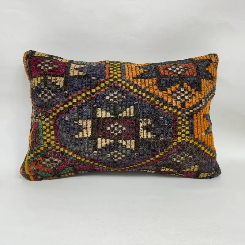 Purple & Pink Striped Throw Pillow, Embroidered Vintage Cushion