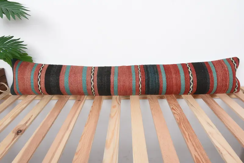 Red & Brown Striped Throw Pillow, Handmade Embroidered Linen Pillow
